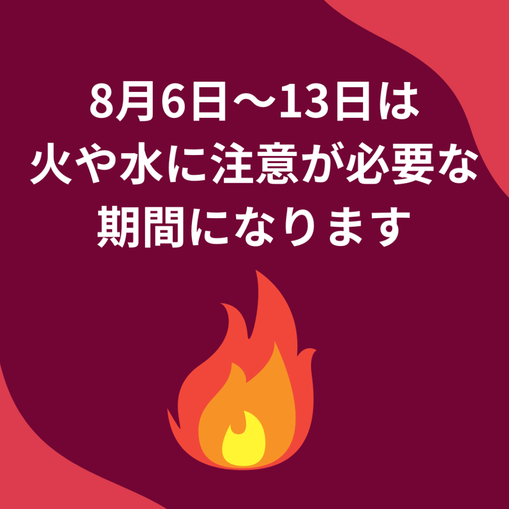 以前「占星術的に8月6日(水)~13日(水)には火・水・地震に注意が必要。」とお伝えしました。