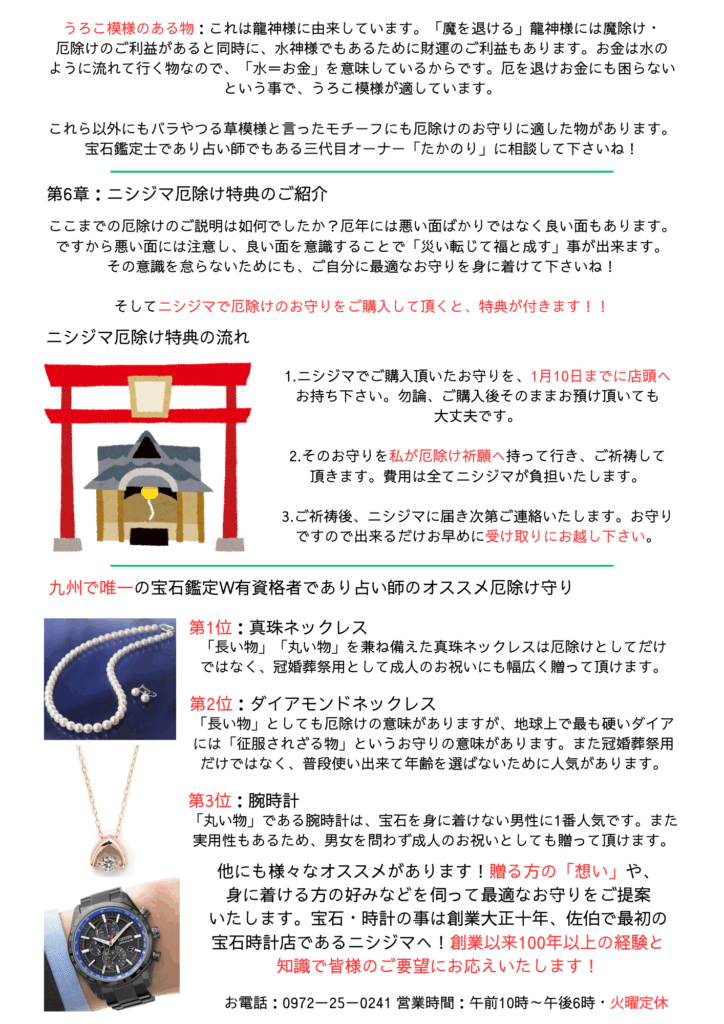 ニシジマご購入分は、ニシジマがご祈祷代を払って厄除けしてもらう「ご祈祷サービス」も付いていますので、是非ご利用下さい!